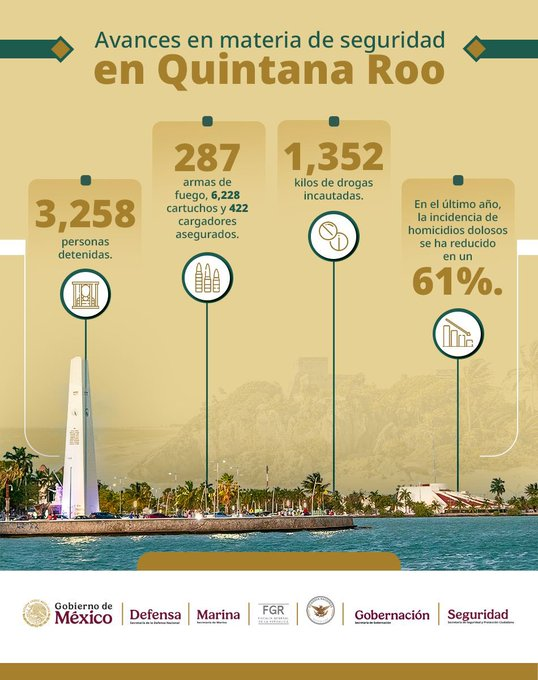 “Estos resultados son posibles gracias a la coordinación entre la Secretaría de la Defensa Nacional, la Secretaría de Marina, Guardia Nacional, Fiscalía General de la República, Fiscalía del estado, el Gobierno de Quintana Roo y sus autoridades”, aseguró García Harfuch.
