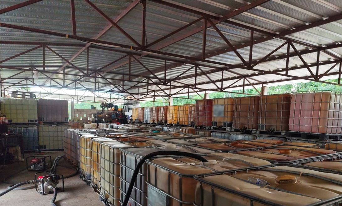 En Seyé, Yucatán, elementos de GN, Ejército Mexicano, Semar, Fiscalía y Policía Estatal catearon un inmueble donde asegurando 105,000 litros de diésel, un semirremolque, tres vehículos, tres motocicletas y una cuatrimoto.