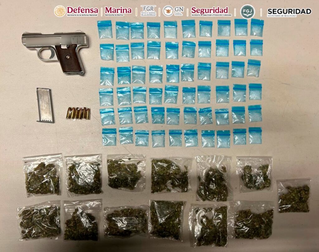 De acuerdo con el protocolo de las Mesas de la Paz, al sujeto le realizaron una revisión de seguridad donde le hallaron un arma de fuego corta, un cargador abastecido, 70 bolsas de plástico con cristal y 12 empaques plásticos con marihuana.