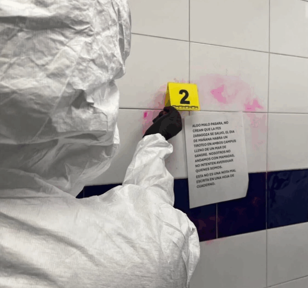 En la FES Zaragoza, la alarma se activó luego de que fueran hallados en un baño de mujeres carteles con amenazas contra la comunidad estudiantil sobre un presunto tiroteo, por lo que las autoridades resguardaron el área y peritos de la FGJCDMX realizaron trabajos de levantamiento de huellas para dar con los responsables.