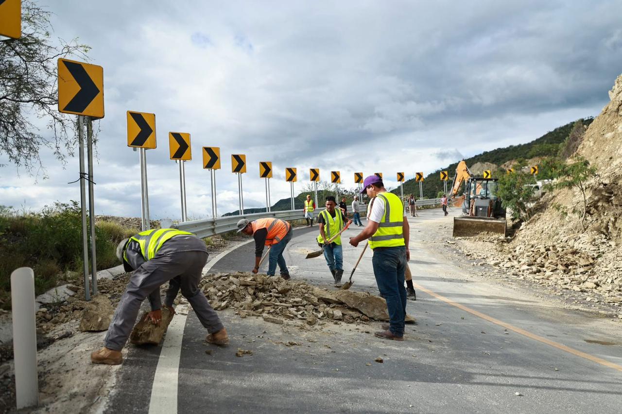● Continúan las labores de limpieza y remoción de material de arrastre en los tramos carreteros impactados por deslaves.
