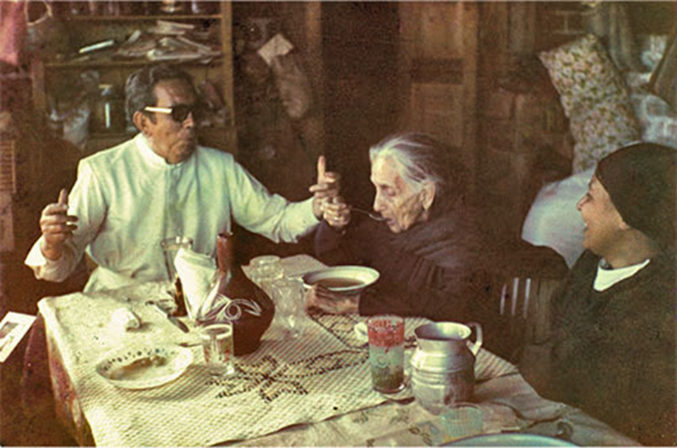 La viejas enseñanzas de Papá Nabor siguen controlando la vida de los fieles de la comunidad de La Nueva Jerusalén. En la foto, se le ve departiendo con su señora Madre, una imagen que muchos conservan para evidenciar lo terrenal y humano de este sacerdote al que se le considera una santo. Foto/ Archivo J. Jesús Lemus