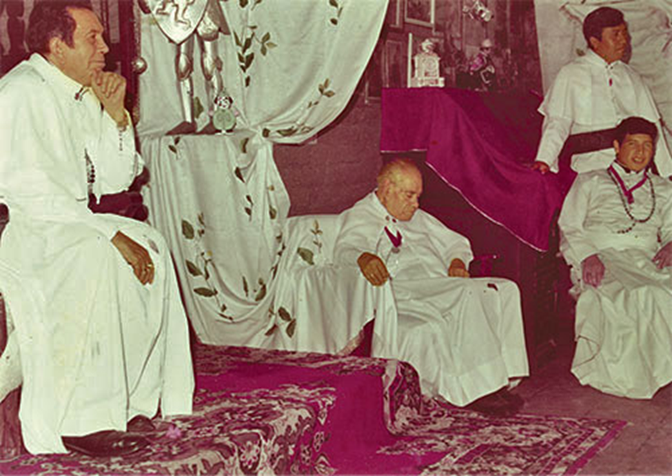 Papá Nabor y el Padre Simeón, durante una reunión-conclave con sus obispos, en donde se profetizaba sobre el fin del mundo y la llegada de Jesús El Hijo a la tierra. Foto/ Archivo Jesús Lemus