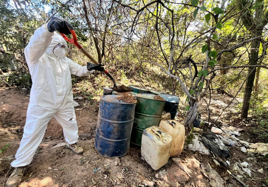 En Culiacán, se localizaron e inhabilitaron tres áreas de concentración de material diverso para la fabricación de drogas sintéticas, se aseguraron 3,550 litros de sustancias para la elaboración de metanfetamina. La afectación económica a la delincuencia organizada es de 72 millones de pesos.