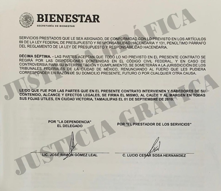 Resulta que allá en sus tiempos como Súper Delegado el Jota Erre Gómez Leal contrató a una persona de nombre Lució César Sosa a través de la Secretaria del Bienestar a su cargo en Tamaulipas.