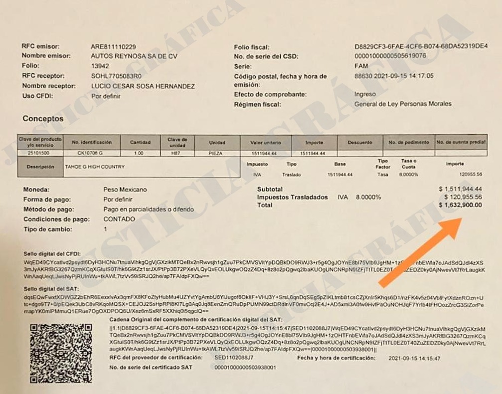 La rareza empieza cuando el joven domiciliado en Villas de Imaq, el 15 de Agosto del 2021 compró una camioneta Tahoe High Country super equipada blanca, con valor de $1’632,900.00 (Un millón seiscientos treinta y dos mil novecientos pesos) con placas XSD650A.