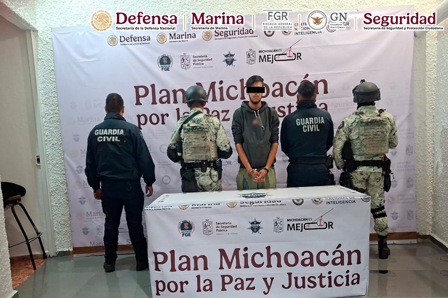 En el marco del “Plan Michoacán por la Paz y la Justicia”, elementos de la Secretaría de la Defensa Nacional (Defensa), Guardia Nacional (GN), en coordinación con la Secretaría de Marina (Semar), Fiscalía General de la República (FGR), Secretaría de Seguridad y Protección Ciudadana (SSPC), junto con la Secretaría de Seguridad Pública (SSP) y Fiscalía General del Estado (FGE) detuvieron a siete personas, aseguraron siete vehículos y siete artefactos explosivos improvisados.