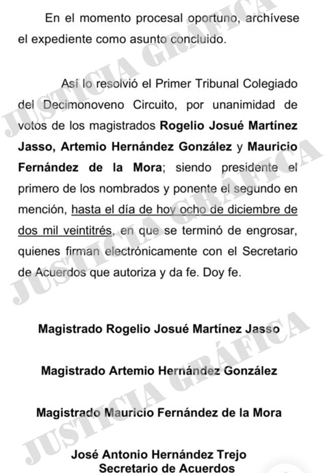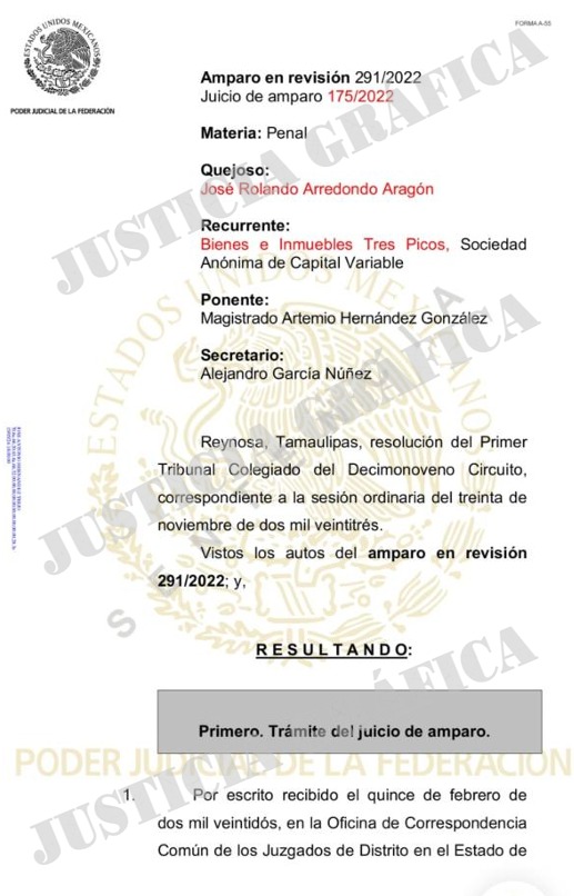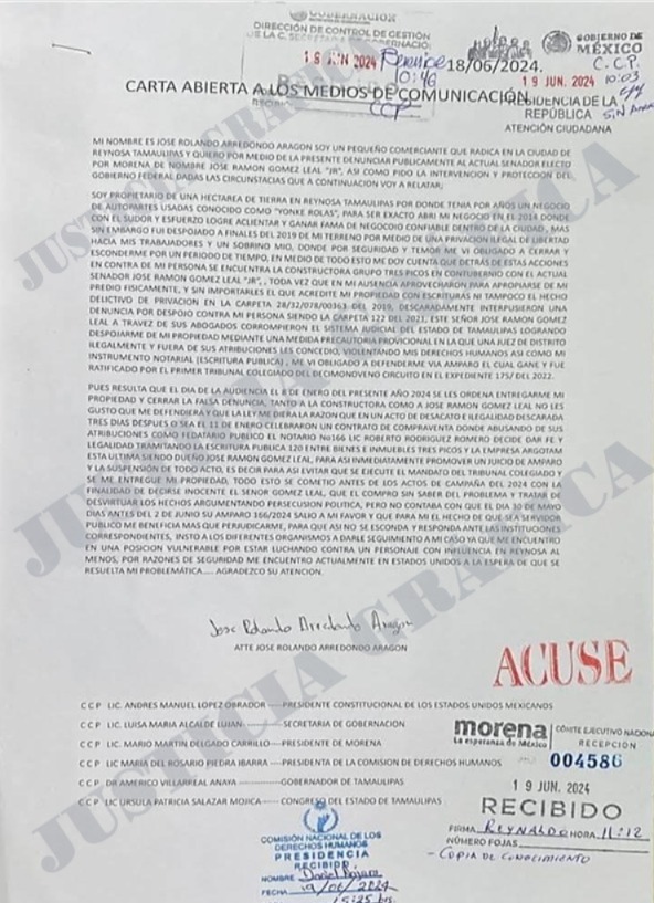 Infortunadamente y gracias a este recurso tramposo, todavía es fecha que Rolando Arredondo Aragón sigue despojado y vulnerable, porque las amenazas de los narcos terroristas para que “ceda” su propiedad al Senador Gómez Leal no han parado y, de hecho, lo mantienen oculto en Estados Unidos.