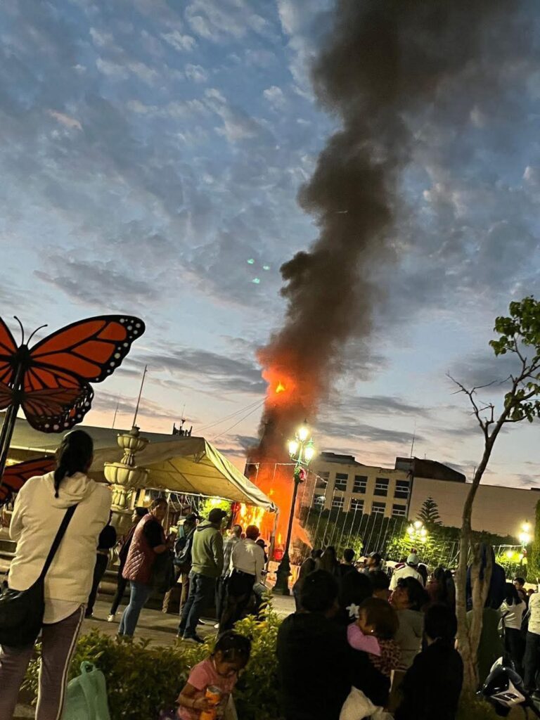 *Ciudadanos de Zitácuaro incendian el pino de navidad en protesta por la “fuga” del tránsito asesino de Ángeles Esquivel