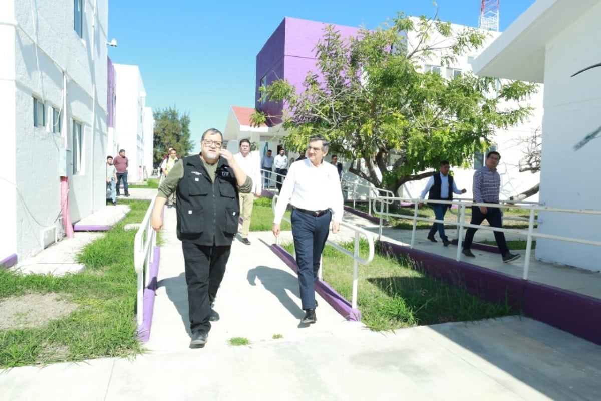El gobernador Américo Villarreal supervisó las áreas de cocina, enfermería, atención médica, lavandería, bodega, el salón de enseñanza y el espacio deportivo que incluye una pista de tartán, y consideró que este Centro del DIF Tamaulipas, el cual se encuentra totalmente bardeado y con iluminación suficiente, cuenta con la capacidad operativa y reúne las condiciones para brindar un trato digno y humanitario a quienes lo requieran ante una probable deportación masiva de Estados Unidos.