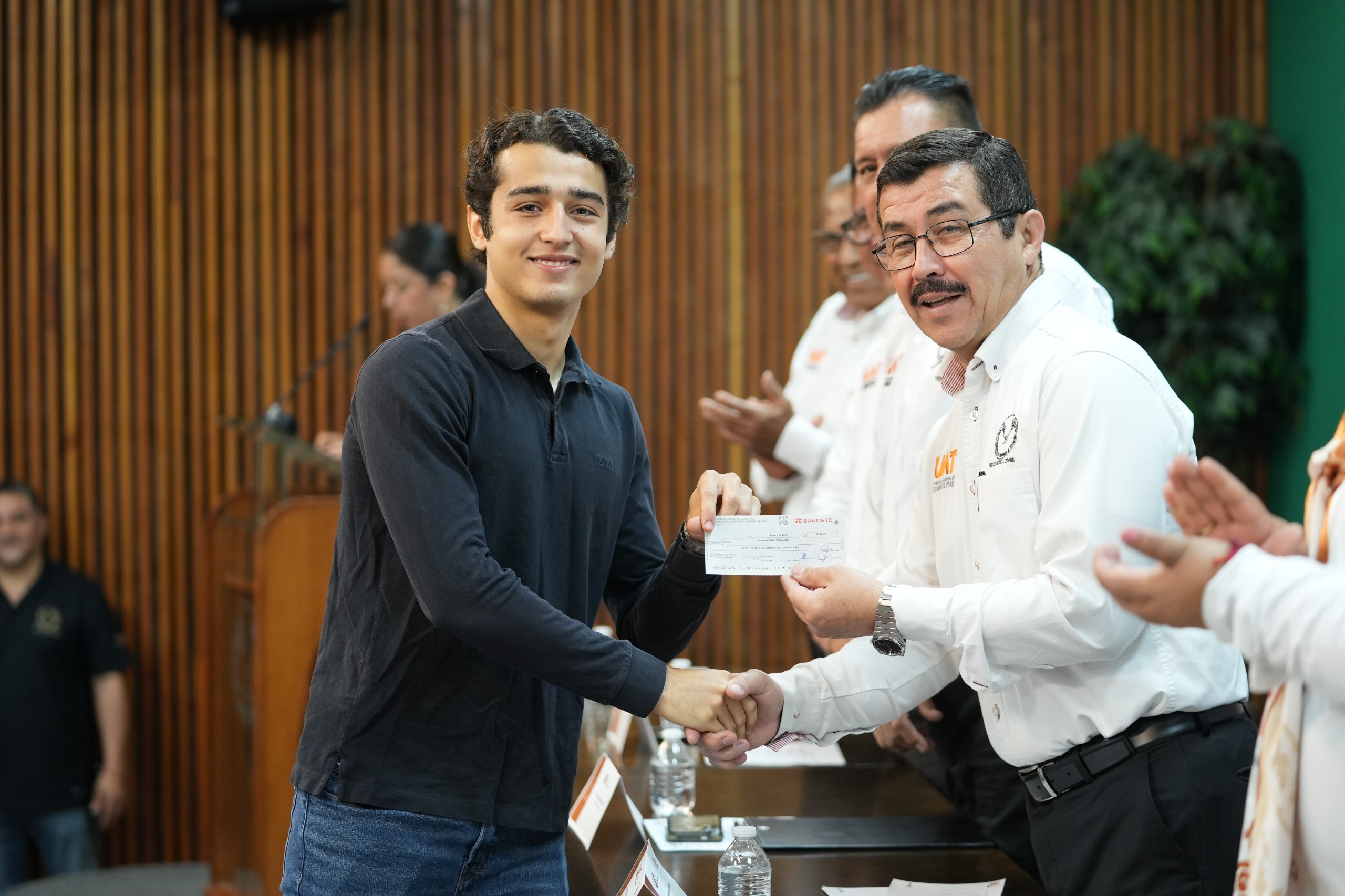En su mensaje, el rector destacó que la entrega de estos estímulos es un reconocimiento al esfuerzo conjunto de las familias universitarias y al compromiso académico de sus hijas e hijos