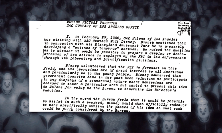 Walt Disney y el director del FBI, J. Edgar Hoover, eran muy cercanos y hablaban sobre cómo llevar la influencia del FBI a los shows de TV como el del Club de Mickey Mouse. Las estrellas de TV, así como los niños que veían estos programas fueron seducidos e insensibilizados por comportamientos sexuales.