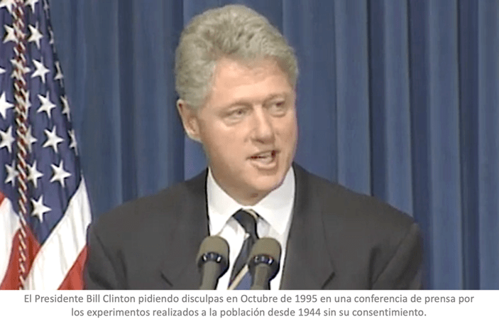 Cuando salió esta información al público, el ex-Presidente Bill Clinton, en 1995, en una conferencia de prensa ofreció disculpas a la nación por los experimentos realizados (min. 18:52) desde 1944, por mantener estos experimentos ocultos y por dañar a las víctimas y a sus familiares. También mencionó un enorme reporte muy importante que le entregó su equipo con esas evidencias.